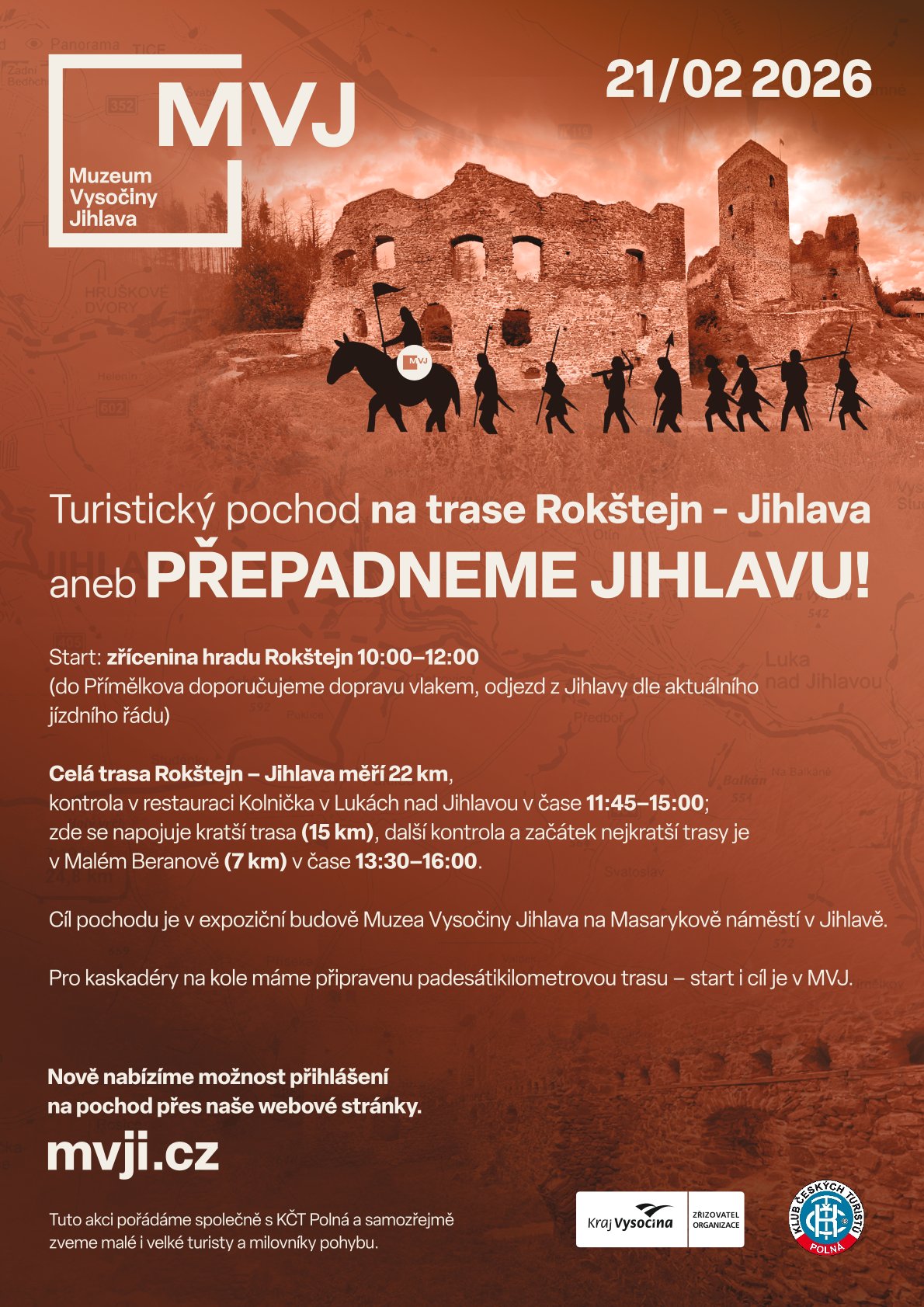 V sobotu 21. února 2026 se uskuteční čtvrtý ročník zimního turistického pochodu na trase Rokštejn – Jihlava aneb Přepadneme Jihlavu.