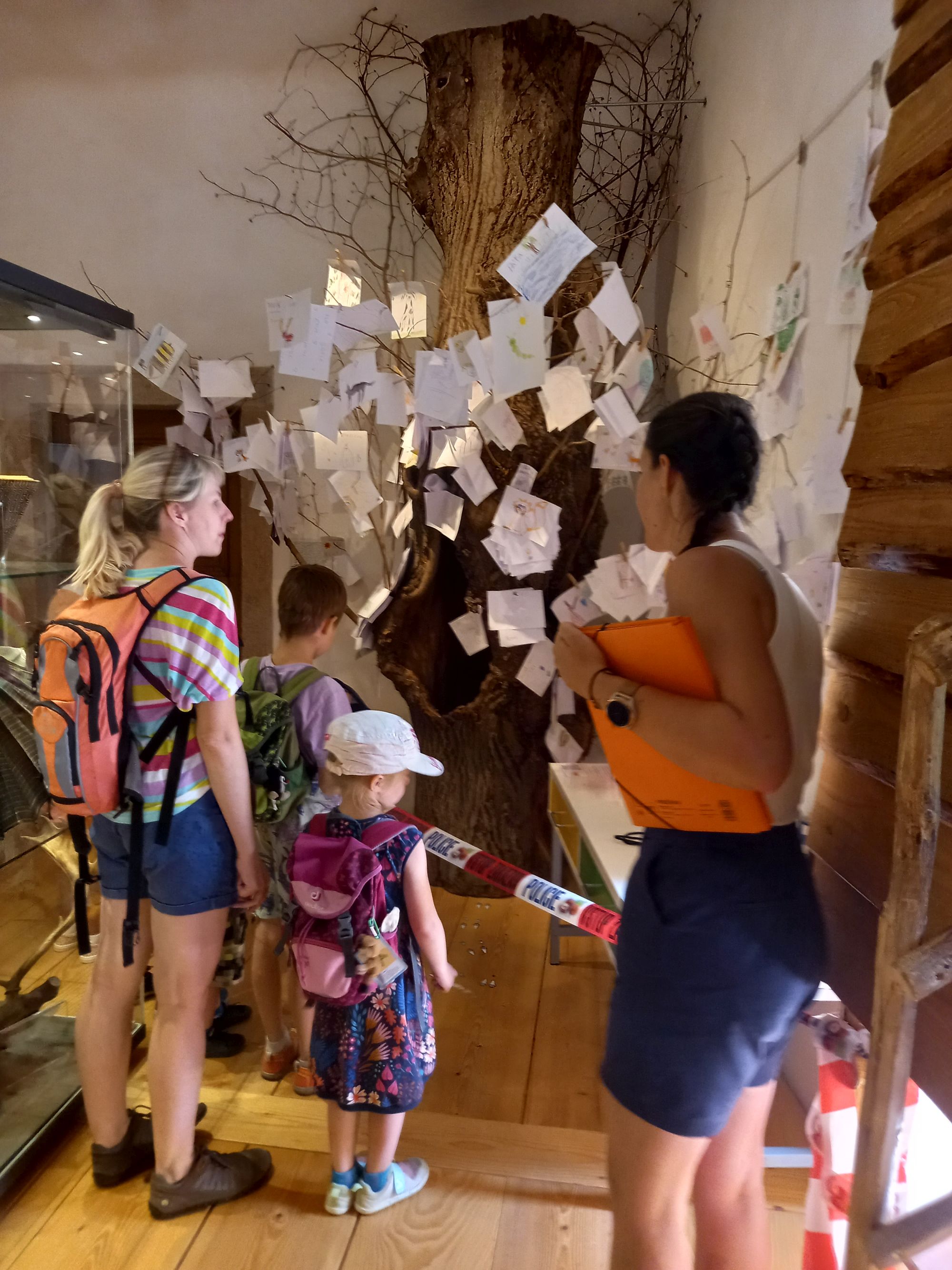 V rámci prvního prázdninového týdne byl program na hradě realizován i v lektorované verzi a to celkem čtyřikrát v prostor trasy B, konkrétně „Lesní herny u zvídavé lišky“. Celkem program s lektorkou Renatou Kremláčkovou absolvovala šedesátka spokojených účastníků (čímž byla zcela naplněna předem naplánovaná kapacita), kteří společně pátrali po tom, zdali veverce ukradl její poklad výr, ježek, datel či snad někdo úplně jiný. Po absolvování programu měli pak návštěvníci možnost si volně doprohlédnout trasu.