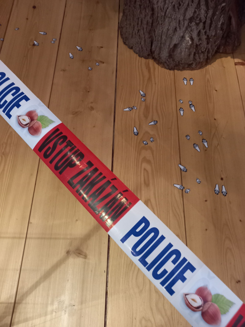 Poprvé byl program realizován na jihlavské Muzejní noci 6. června 2025 a následně vznikla myšlenka přenést jej v lektorované i samoobslužné verzi na Roštejn. Samoobslužná verze je založená na postupném načtení sedmi QR kódů, které jsou umístěné v prostoru vstupu do hradu, nádvoří a trasy B. První kód seznámí hráče s příběhem okradené veverky, dalších pět představí hlavní podezřelé z řad lesních zvířat. Pokud následně návštěvníci správně dedukují, jsou schopni jméno pachatele zadat po načtení sedmého kódu na konci trasy a je-li jejich odhad správný, dozví se rozuzlení příběhu. Hra je k dispozici zcela zdarma, podmínkou je pouze zakoupená vstupenka na trasu B, kde se část QR kódů nachází. Hra zůstane na hradě umístěna minimálně do konce návštěvnické sezony 2025.