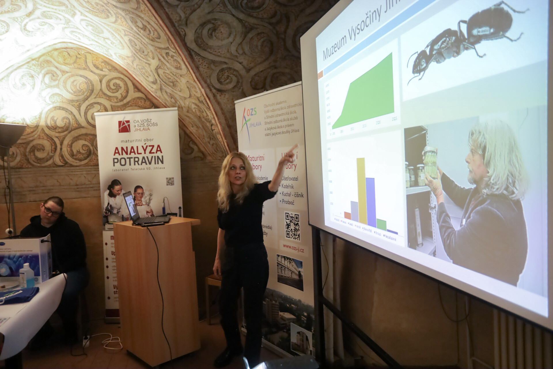 Závěrem vystoupila muzejní vědkyně RNDr. Klára Bezděčková, Ph.D., která přiblížila svou cestu k vědecké práci a představila také výzkumné aktivity Muzea Vysočiny Jihlava. Její vystoupení nabídlo účastníkům možnost nahlédnout do světa současné vědy přímo z prostředí muzejní instituce.